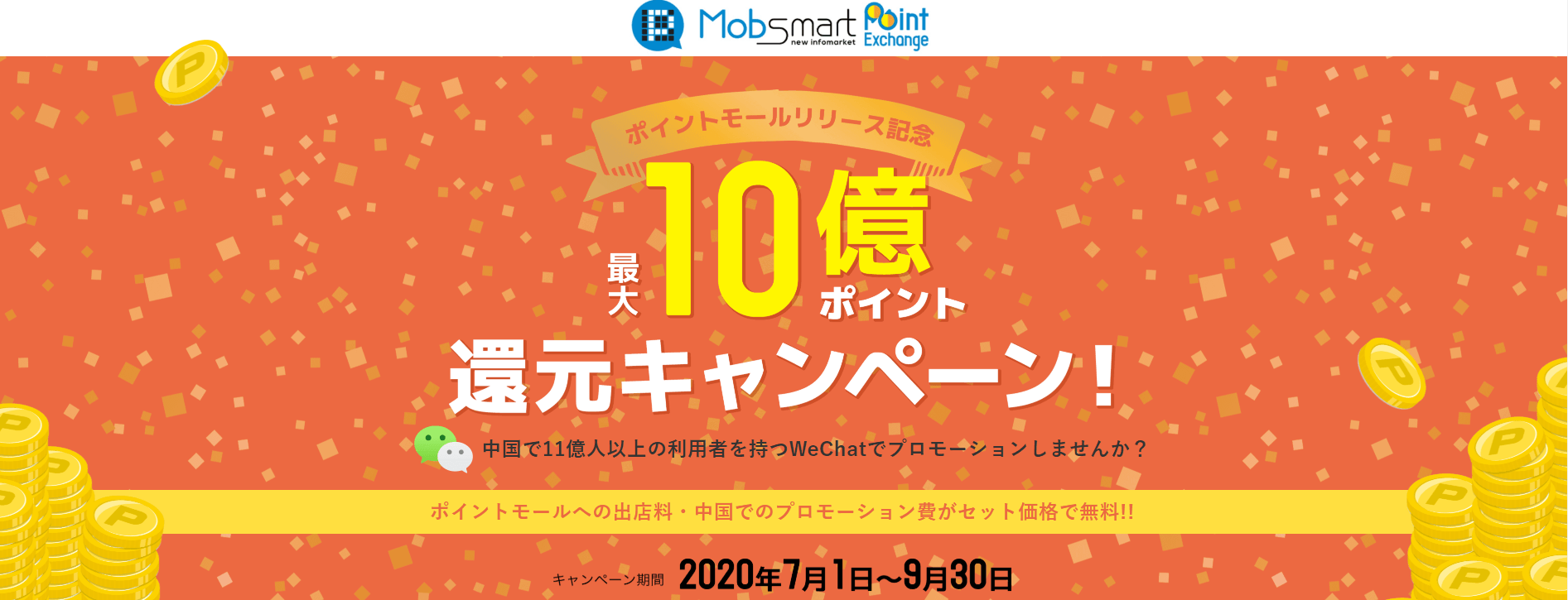 インターネット上で消費者の様々なアクションに対して独自の世界共通ポイントを付与するサービス「Mobsmart Point Exchange」を提供する株式会社KPIソリューションズ(本社:東京都中央区、代表取締役:石田 徹郎)は、この度、中国本土でのWeChatアカウントと連携したサービスリリース、および日本市場向けのサービスならびにポイントウォレットアプリのリリースを記念し、「ポイントモールリリース記念最大10億ポイント還元キャンペーン!」と題した消費者への大規模ポイント還元イベントを実施することを発表いたします。