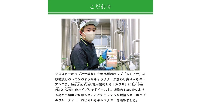 今回のコラボレーションではLEVEL BEERのShaneさんとメールでやりとりをして、レシピを作り上げました。新たな原材料への挑戦でとてもワクワクしましたし、助言をたくさんもらって勉強になりました。オープンマインドなクラフトブルワリーの世界に乾杯!!