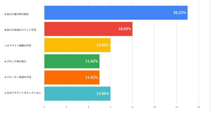 - 友達数の伸び悩み30.23%、友達追加のメリット不足18.60%