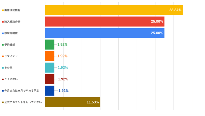 - 画像作成機能28.84% 診察券機能と流入経路分析は同数の25%