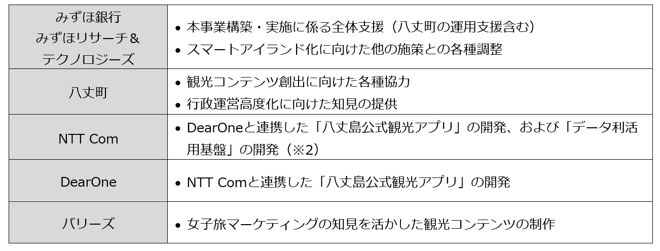 株式会社みずほフィナンシャルグループ(執行役社長:木原 正裕)の子会社である株式会社みずほ銀行(頭取:加藤 勝彦、以下「みずほ銀行」)とみずほリサーチ&テクノロジーズ株式会社(代表取締役社長:吉原 昌利 、以下「みずほリサーチ&テクノロジーズ」)、および東京都八丈町(町長:山下 奉也)は、このたび、八丈島のスマートアイランド化、サステナブル・アイランド化推進の一環として、NTTコミュニケーションズ株式会社(代表取締役社長:小島 克重、以下「NTT Com」)、株式会社DearOne(代表取締役社長:河野 恭久、以下「DearOne」)、バリーズ株式会社(代表取締役:野々村 菜美、以下「バリーズ」)とともに、八丈町の持続可能な地域経済の創出を目的に、観光DXの一環として「八丈島公式観光アプリ」および「データ利活用基盤」を導入しました(以下、「本事業」)。
