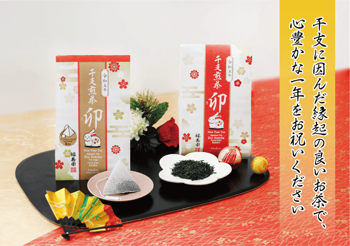 今年の干支「卯」の文字は、双葉が開いて成長し、盛んに茂る姿の象形文字がルーツともされています。双葉が開くように、新しい芽生えを期待したいとの思いを込めてお作りした、縁起の良い干支煎茶をお届けいたします。どうぞ新年も心豊かな佳き日々をお過ごしください。