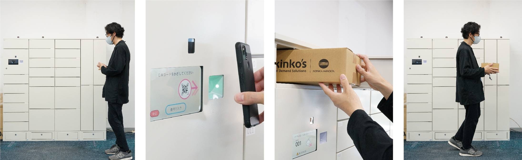 今回、この「商品受取ロッカー」を店内に導入した事で、利用客は品物を受け取る際に、スタッフの対応を待たず品物の受取りを自身で完結でき、利便性が向上します。また昨今の新型コロナウイルスにより高まった非対面のニーズも満たすことができると考えました。 当社が運営するキンコーズは、注文店舗と受取店舗が異なっても、顧客が都合の良い店舗で品物を受け取ることができる*特長があります。ビジネスシーンにおける具体的な例として、オンラインからの注文や勤務先に近い大阪市内の店舗で注文し、新幹線の降車駅となる横浜駅近くの店舗で待ち時間を気にすることなく品物を受取り、客先に向かうなど便利に利用する事ができます。今回の試験導入による顧客の利用状況やご意見を踏まえ、取り扱い店舗の拡大を検討していきます。