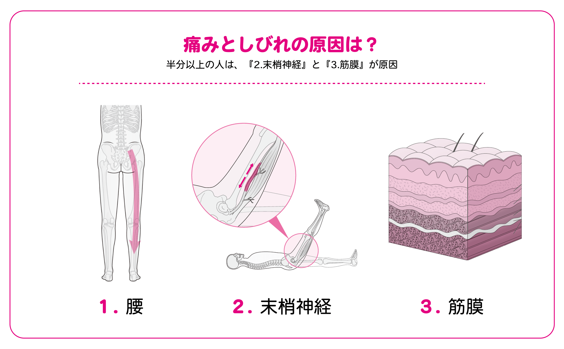 脚の痛みやしびれに悩まされている人が診察を受けると、その原因は腰にあると医療者に説明を受けることがほとんどだと思います。しかし、著者は少なくとも半分以上の方は、『末梢神経』と『筋膜』によって症状が生じていると解説しています。