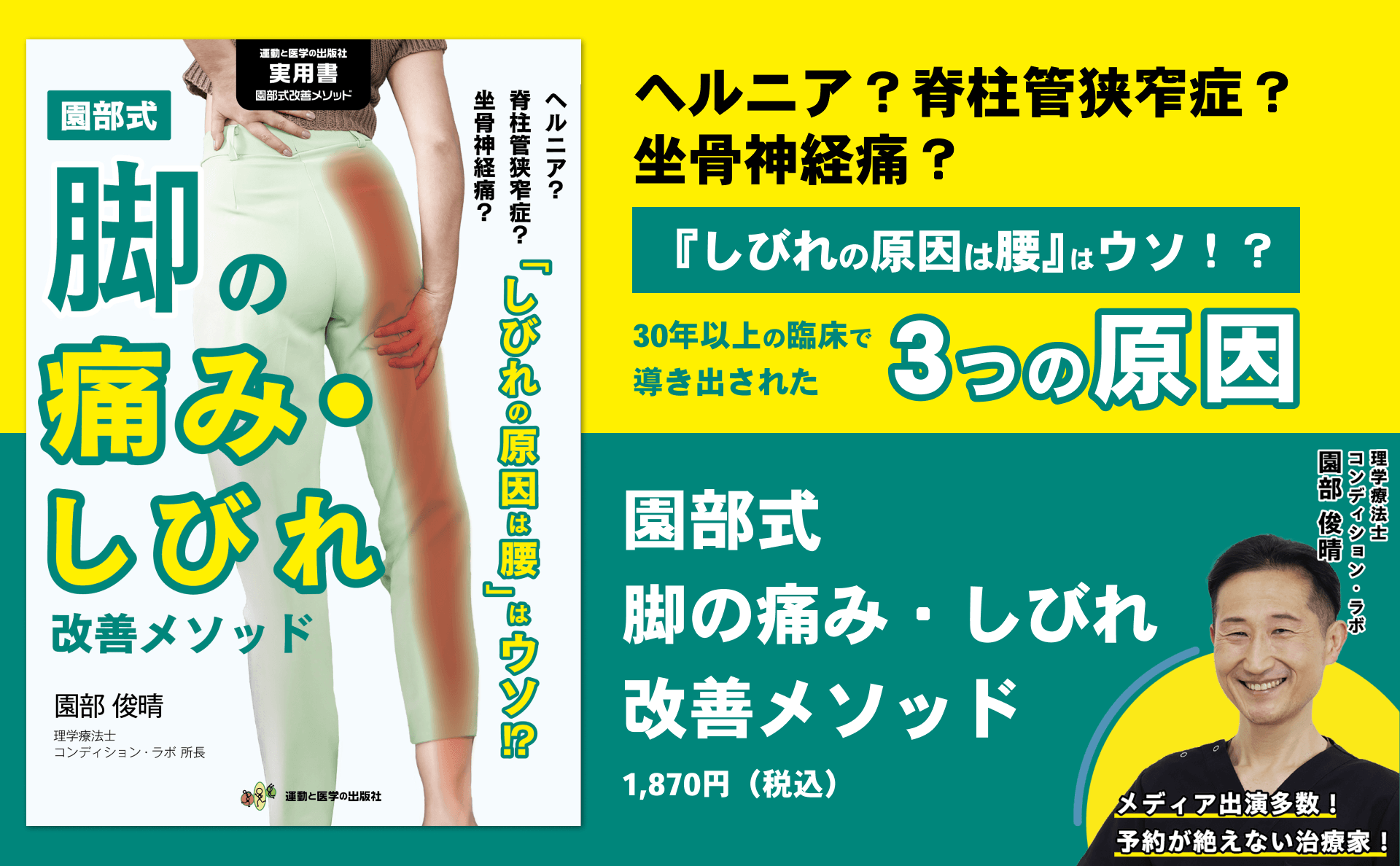 脚の痛み・しびれのセルフケアを一流治療家が大公開! 書籍『園部式 脚の痛み・しびれ改善メソッド』10/28発売
