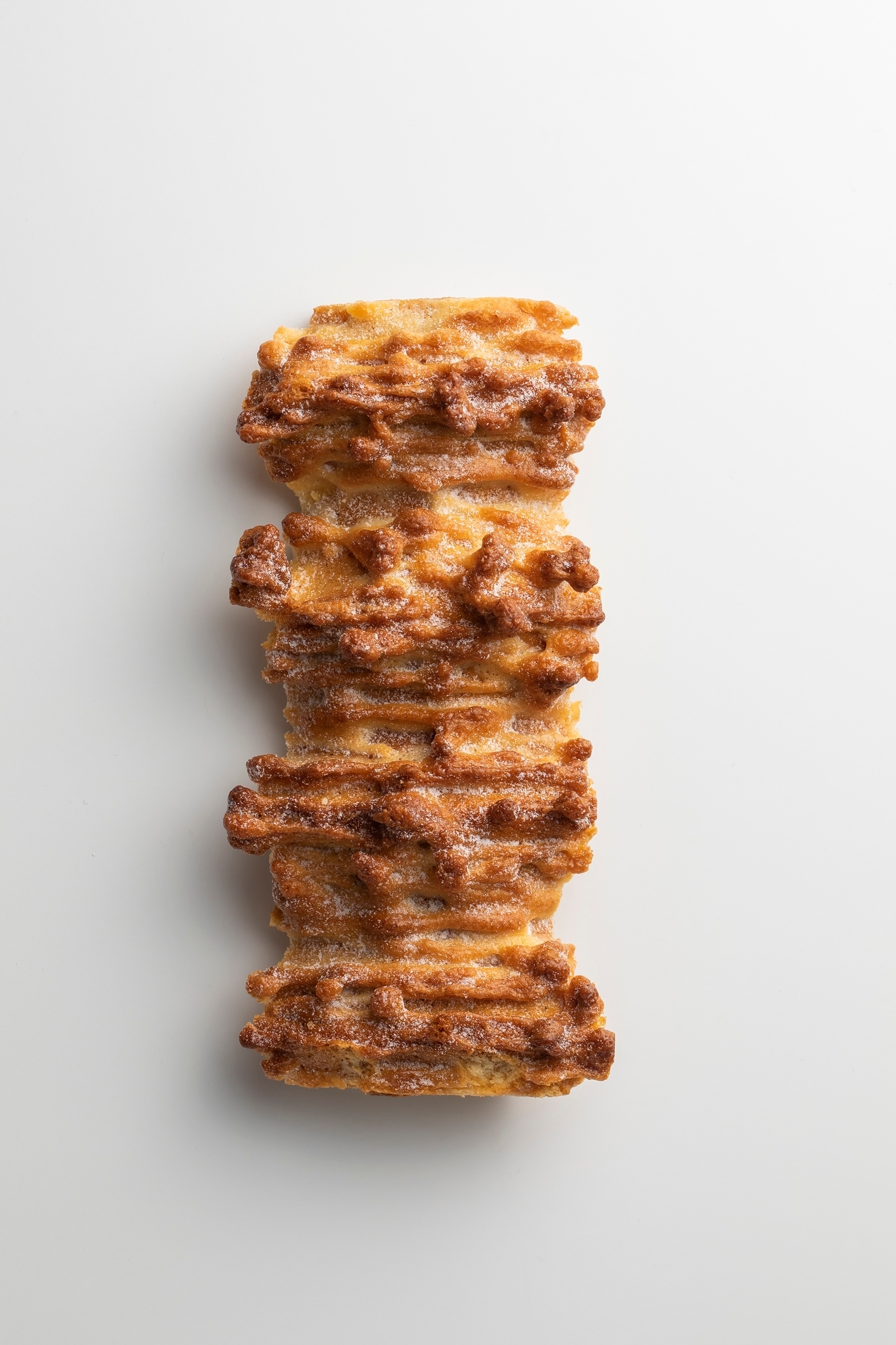 創業時から大人気のクリスピーバウムクーヘン。ごつごつとした見た目が切り株を連想させる特徴的なフォルムのバウムクーヘンです。ふらの牛乳やよつ葉バターを使用し、オーブンで少し温めるとバターがふわりと香り食欲をそそります。