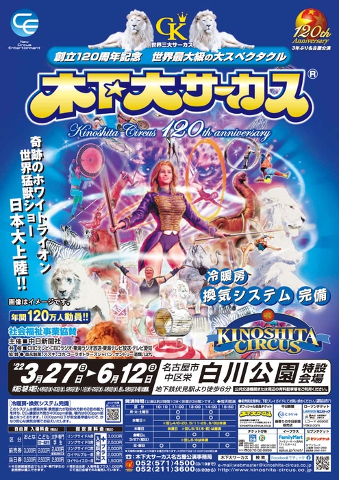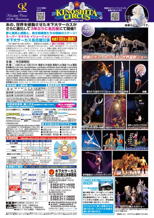 興奮と感動に満ちた栄光1世紀をこえた120周年の記念ツアー、木下大サーカス3年ぶりの名古屋での公演です。