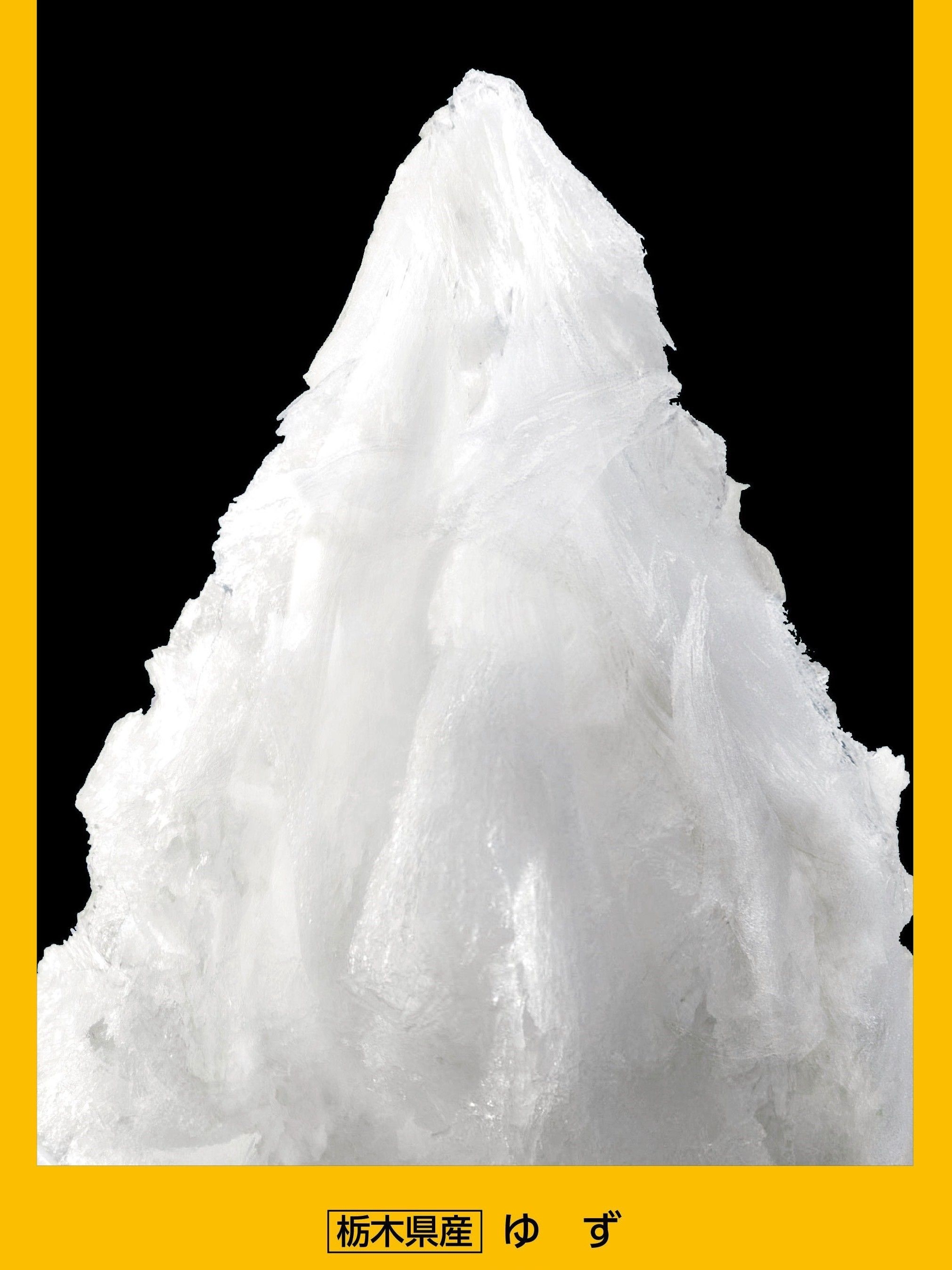 夏の終わり頃から採氷池の土を耕すなど準備を開始。清冽な沢の水を採氷池に流し込み、寒波によってゆっくりと天然氷に成長。(氷の状態、出来具合を見て、時には氷を割りまた一から造り直すこともあります。)2週間ほどで約15cmの厚みになったところで一定の大きさ(約800×450×150mm)に切り出された天然氷は、氷室の中で貯蔵され出荷まで保存されます。天然氷をきれいに成長させるには、ゴミやほこり、雪を取り除くなど毎日のこまめな管理が必要の他、切り出された重い氷を氷室まで運搬するなど重労働を伴います。最近では気温が十分に下がらなかったり、以前はあまりなかった真冬の雨や湿気を含んだ雪が増えていることにより、氷がなかなか厚くならないほど地球温暖化の影響が深刻になっています。そんな手間暇かけた天然氷。日光アイスファーマーたちの渾身の逸品です。