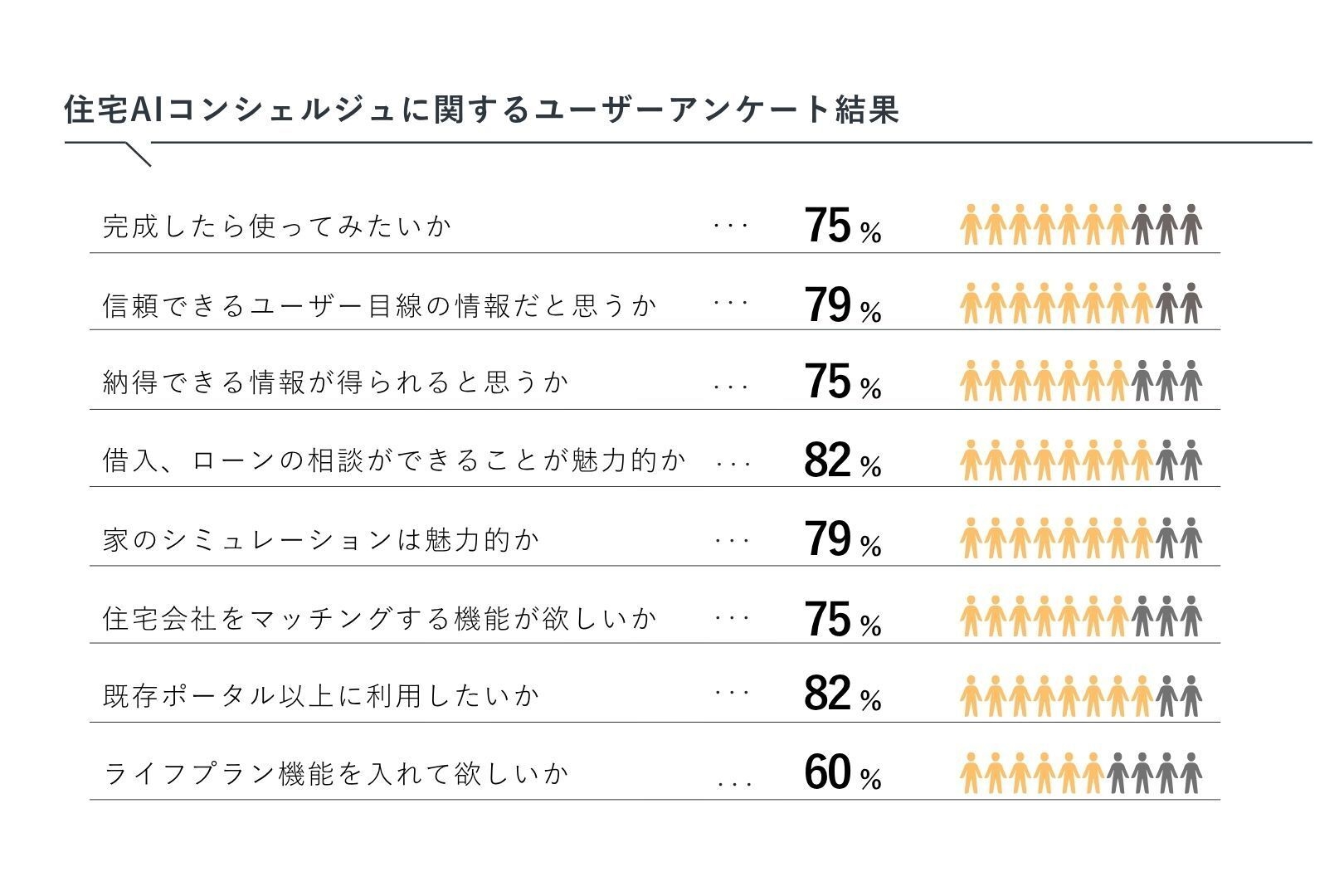実際に住宅AIコンシェルジュに関して実施したユーザーアンケートで、得られた結果は以下の通りです。