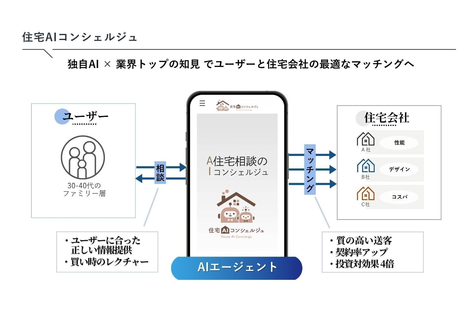 また、すべてのプロセスがデジタルかつ生成AIベースで構築されているため、ユーザーの声や行動をもとにAIが日々アップデートされ、常に最新かつ信頼性の高い住宅アドバイスを提供できる仕組みとなっています。