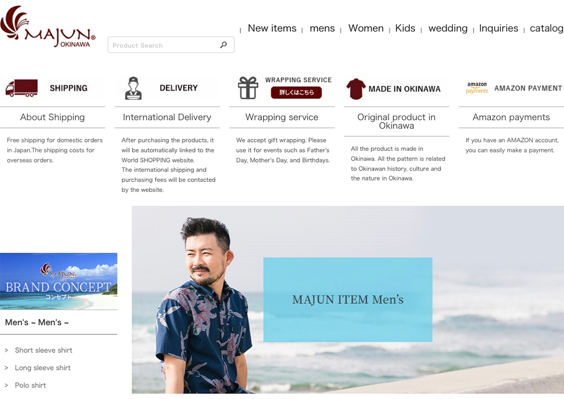かりゆしウェアブランド『MAJUN OKINAWA』の公式オンラインストアを、英語、簡体字、繁体字で公開しております。