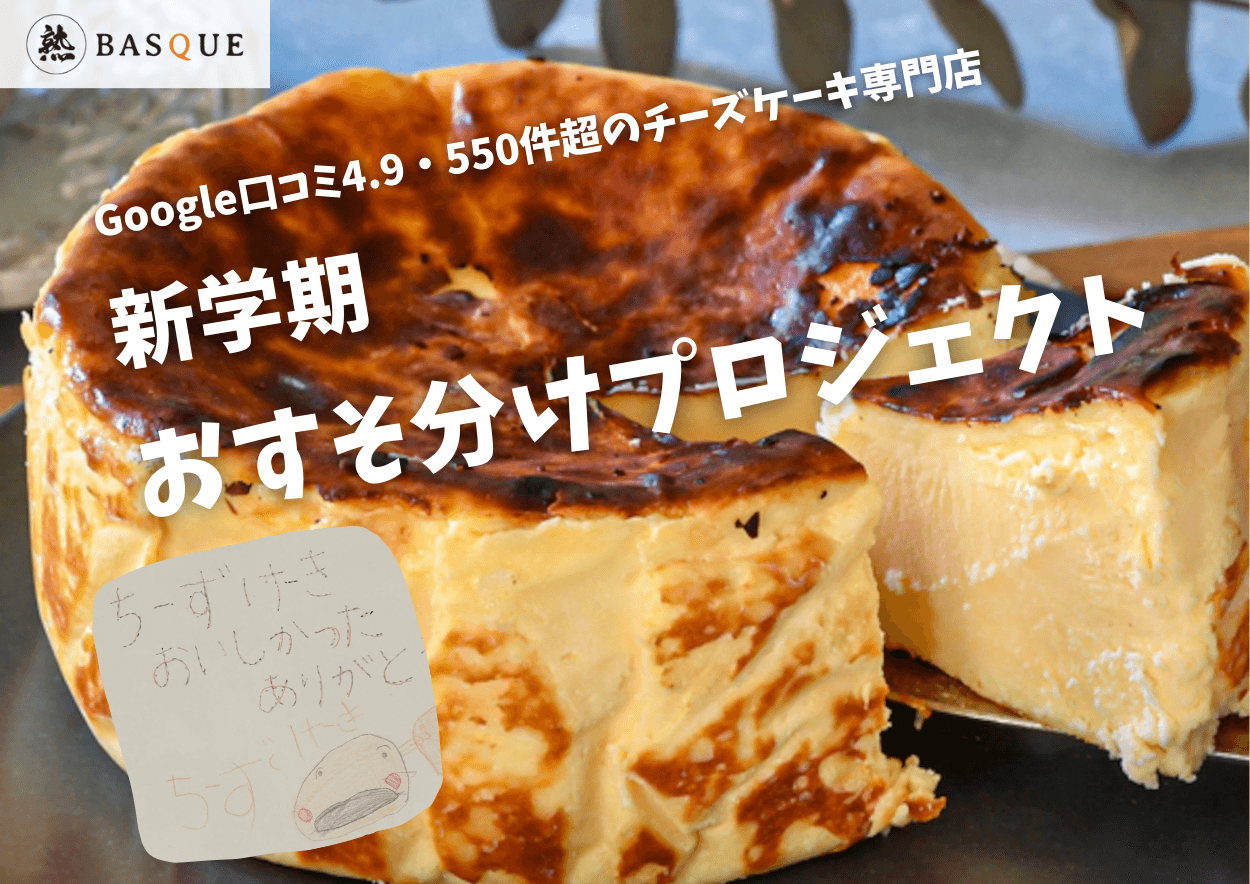 そしてこのたび、9月の“新学期”という特に子どもたちの心が不安定になりやすい時期に合わせて、製造過程で発生する型崩れしてしまった熟成バスクチーズケーキを無償で届ける「新学期おすそ分けプロジェクト」を開始いたします。