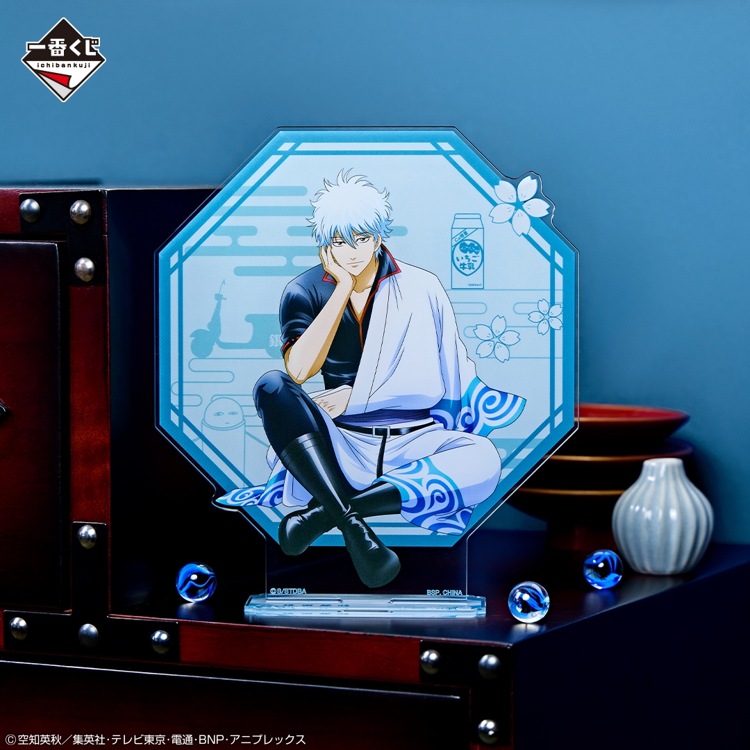 本商品は、「銀魂」の一番くじです。連載20周年を記念し、フィギュア各種、ビッグアクリルスタンド、クリアファイル&ステッカーセット、ラバーチャーム、描き下ろしビジュアルポスターをラインナップしました。