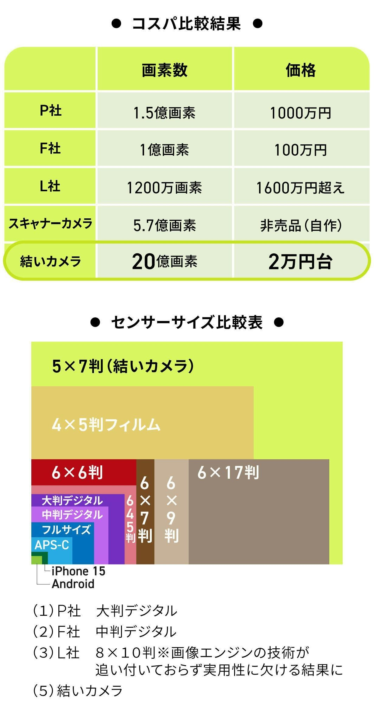 *1.5億画素大判デジタル機の200分の1の予算で14倍もの解像度を実現→コスパ2,800倍!