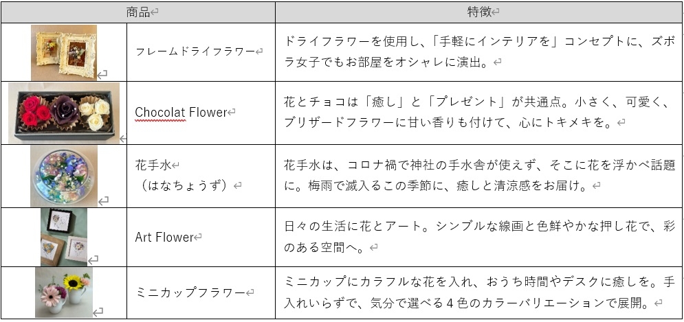 ・5チームがそれぞれ考案したバラエティーに富んだ新商品を、日比谷花壇 KITTE名古屋店で6月20日~7月3日まで限定販売。