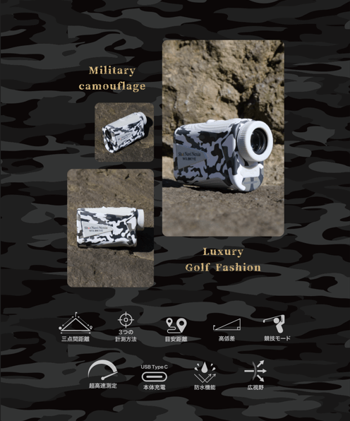 目安距離、高低差、競技モード、超高速計測、充電式など