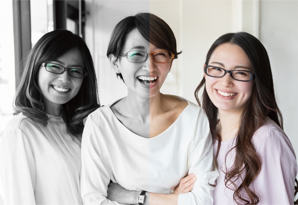 新しい生活様式としてリアルからオンラインでのコミュニケーションが急速に普及しつつあります。モニター越しの場合、ディスプレイから直接光が発生しているため、ふとした時にレンズのぎらつきや反射が気になります。NRCは人の眼が感じる波長を考慮し、さらにコーティングの反射を抑えることで従来品と比較し視感度反射率を約1/4に低減。世界に類を見ない視感度反射率約0.19%(*3)を実現しました。