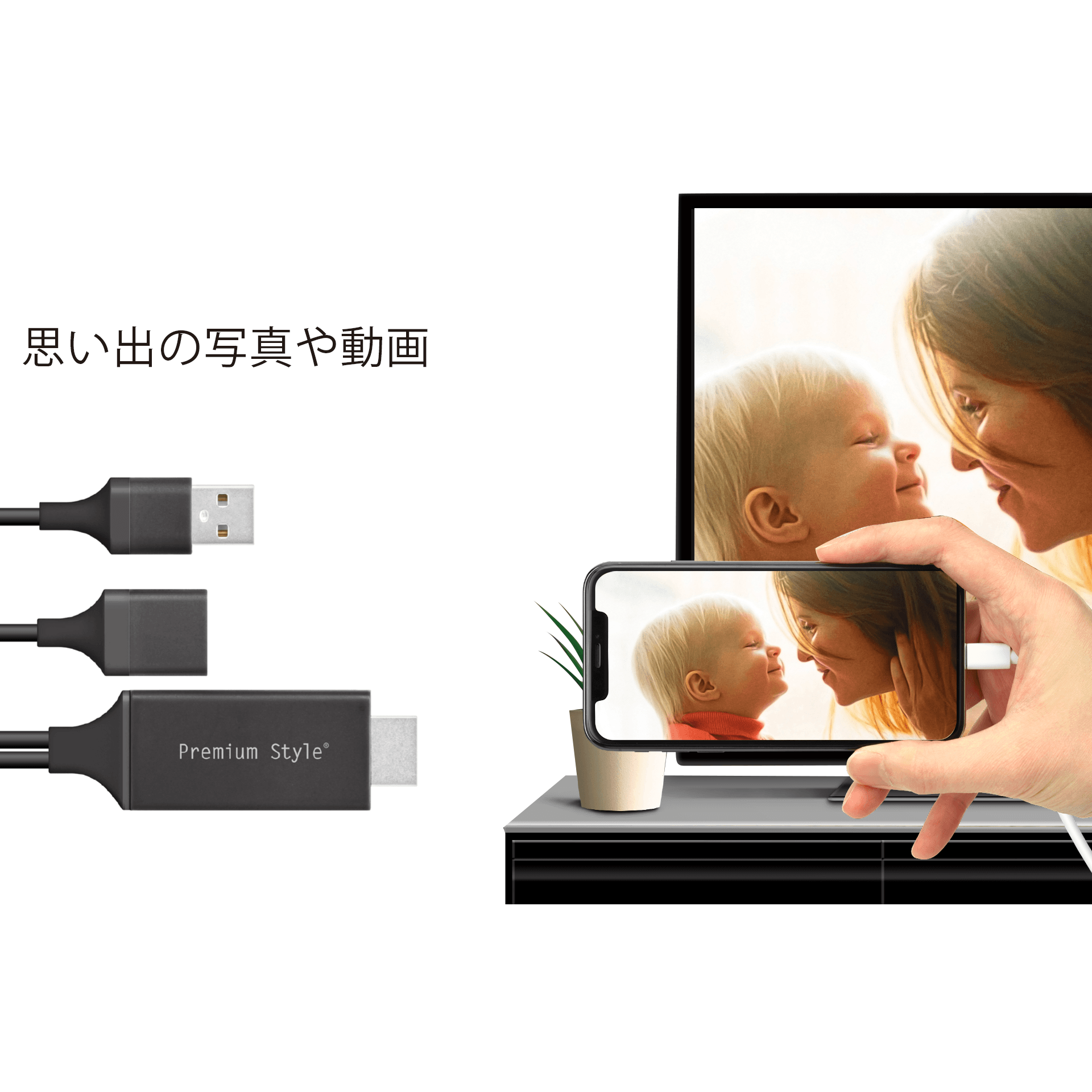 デバイスとディスプレイを繋ぐだけの簡単接続設計のHDMIミラーリングケーブル