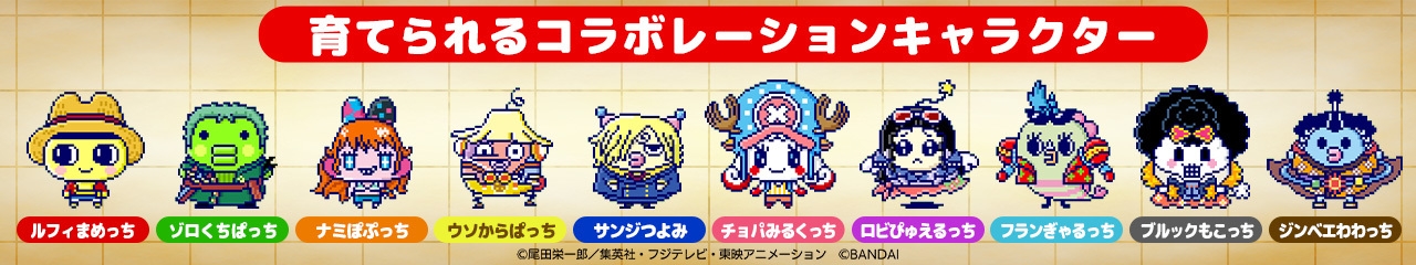 『たまスマカード ワンピースフレンズ』を本体にダウンロードすることで、ONE PIECEに登場するキャラクターのようになったたまごっちのお世話や、ONE PIECEの世界観を楽しめるアイテムやミニゲームで遊ぶことができます。