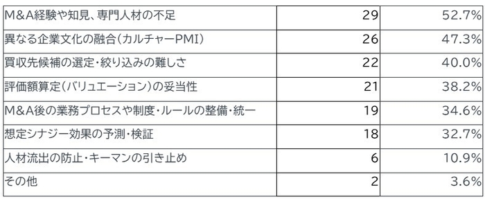 ・最多の課題は「M&A経験や知見、専門人材の不足」で52.7%