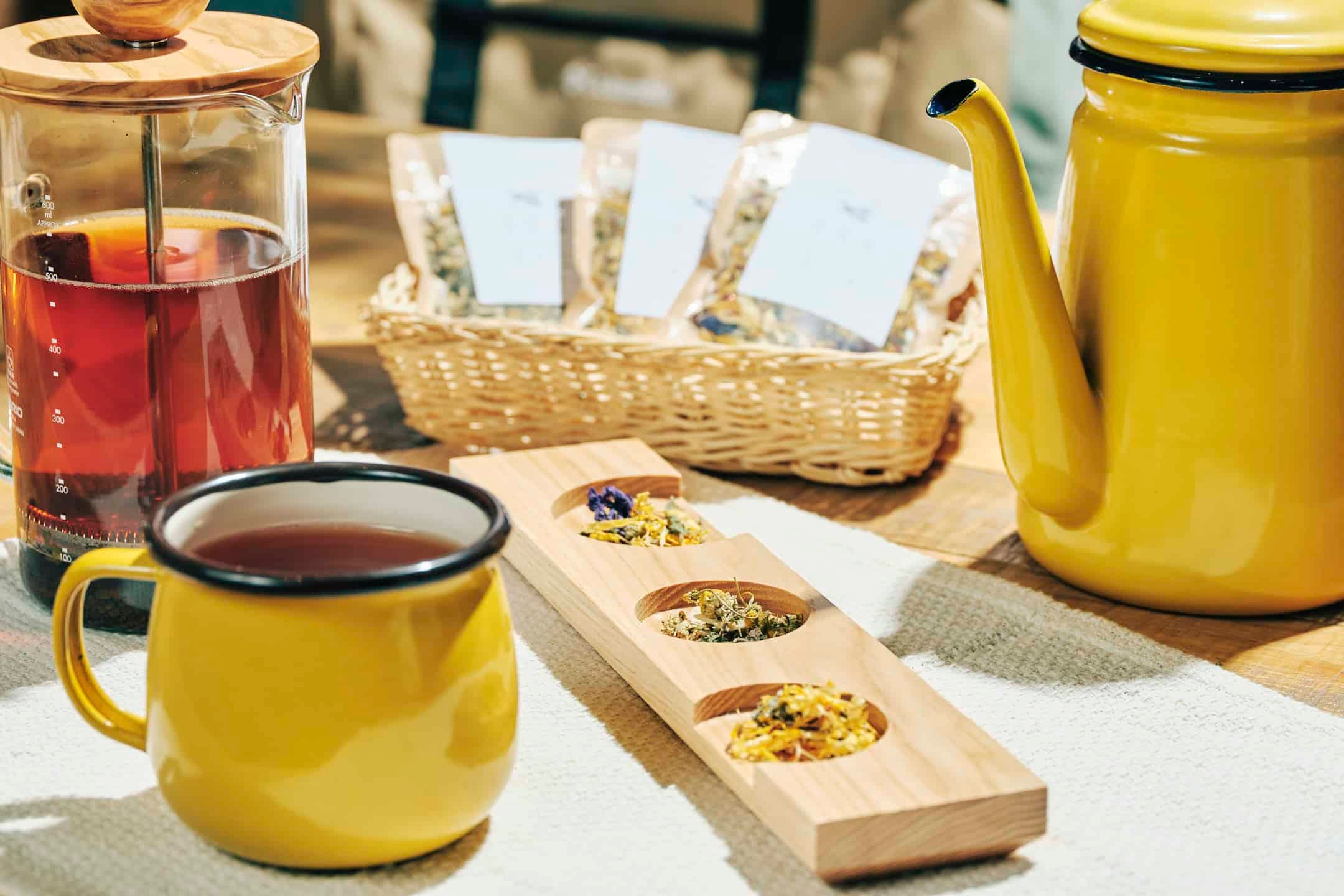 思いっきり叫んでストレスを発散した後は、旭岳で「石渡紅茶本店」のハーブティーを飲んでリラックス。ハーブティーは「カモミールブレンド」・「マリーゴールド&オレガノブレンド」・「キンモクセイブレンド」の3種類から選ぶことができます。ティープレスで茶葉を蒸らし、ゆったりと紅茶の香りや味を楽しみながらOMOレンジャーに日々の相談をしてみては?