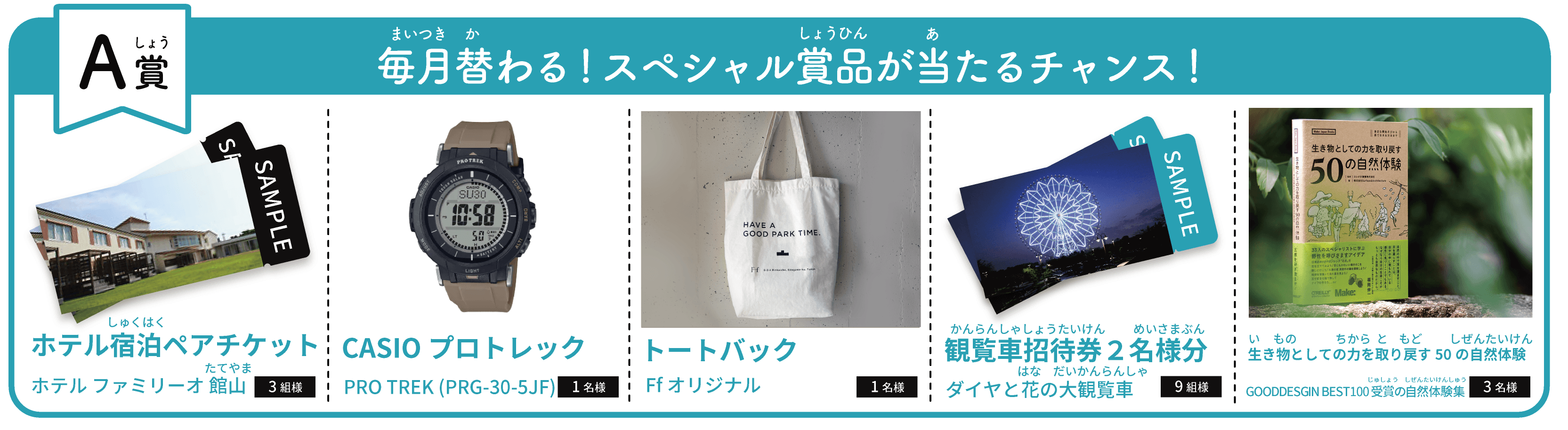 毎月変わる賞品については、葛西臨海公園公式Twitterで随時発表します