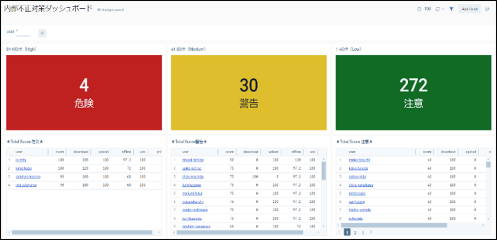 疑わしいユーザが行った行動や退職者の行動履歴が可視化可能なダッシュボードを提供