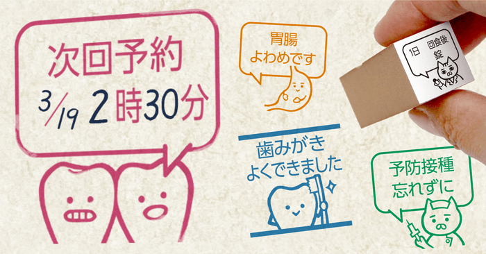 カレンダーや横長のふせんにちょうど良いサイズのため、歯医者さんや病院の予約日を入れられるように文字入れすると、自分だけのオリジナルスタンプが完成します。