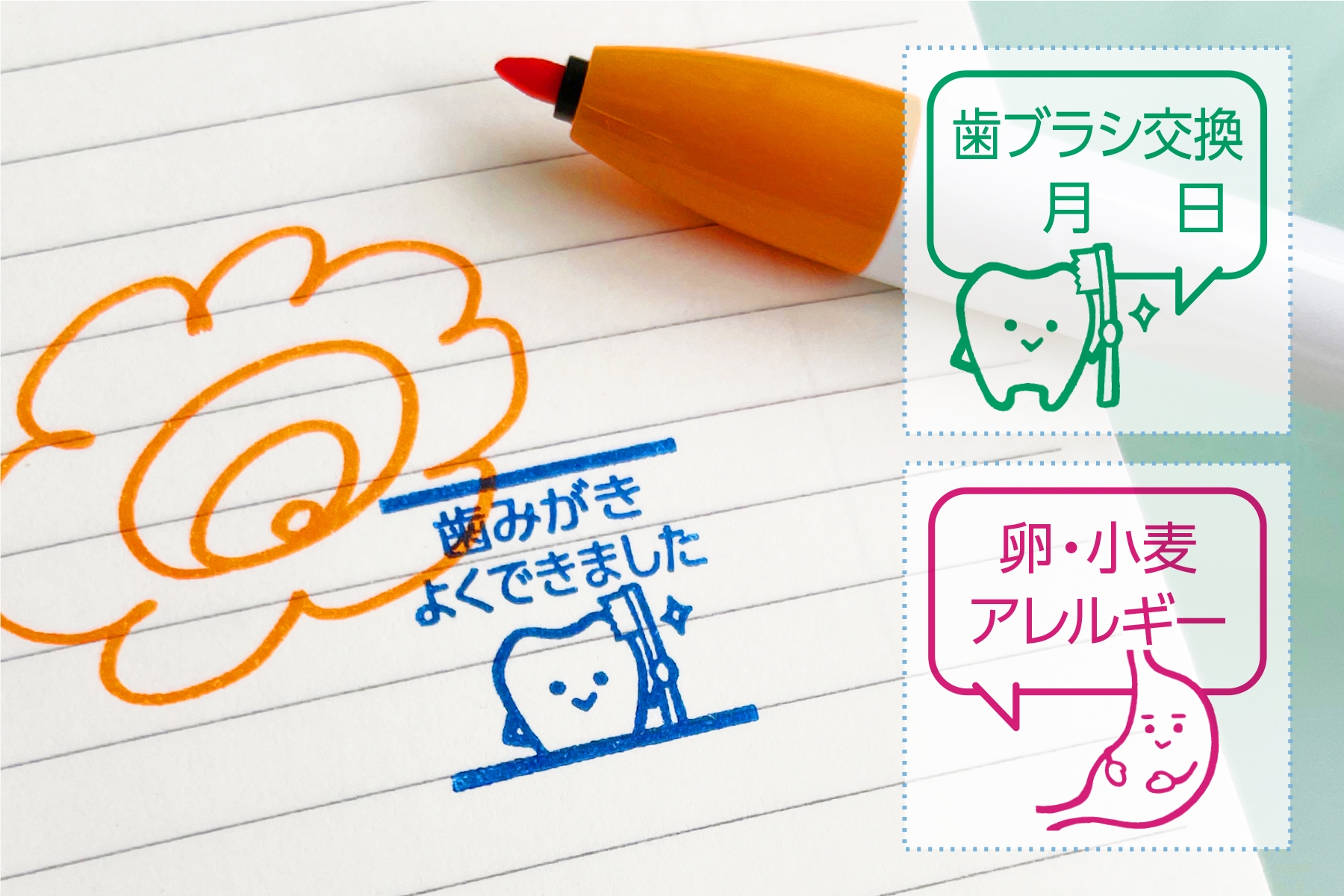 「歯みがき よくできました」「卵・小麦 アレルギーあり」など、さまざまなシーンのメッセージにお使いいただけます。