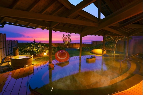 日本海に沈む夕日を眺める海辺の温泉宿で、クリスマスのひと時をお楽しみください。