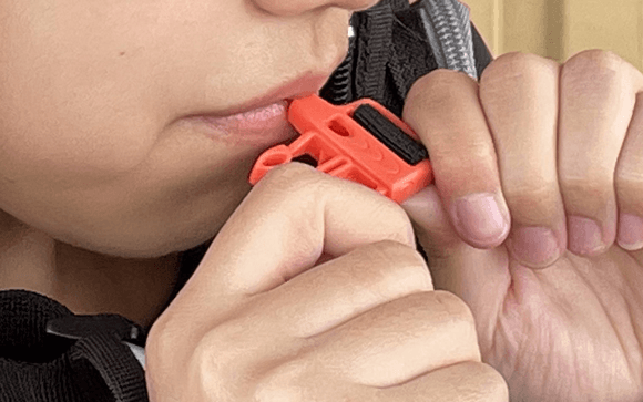 防災リュックの必須機能である、わずかな光でも反射するリフレクターを採用し、停電時の夜の避難でも存在をアピールすることができます。またバックル部分にはホイッスル機能を搭載しており、災害時や緊急時に居場所を伝えることができます。