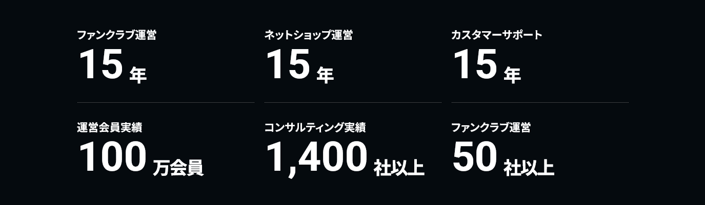 日本最大級の規模を誇るダンス&ボーカルグループから海外アーティストのファンクラブまで、15年の運営実績をもつ当社に安心してお任せください。