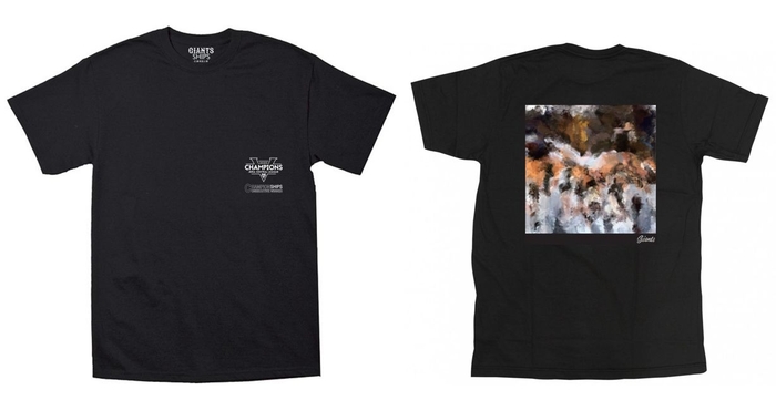 「歓喜の瞬間をアートに!“胴上げ”を油絵風にアレンジしたバックプリントTシャツ。左胸に入ったCHAMPIONS“V”のワンポイントもグー!」