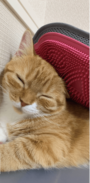猫モニターのうにちゃんに協力していただいたところ、こんなにかわいいトロ顔になってしまいました。特に脇腹をなでなでされると喜んでいたそうです。