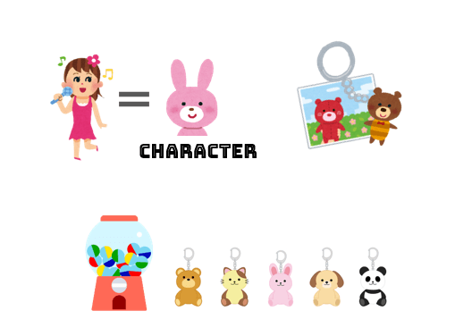 更に、最近ではアイドルがキャラ化されることでズバリのグッズではないため、自分と分かる人だけに伝わるサインとなり、さりげなく身に着けやすくなりました。加えて手軽な流通経路(100均やコンビニ)、かつエンタメ性(ランダム・ガチャなど)の定着により、ファンだけでなく興味を持ち始めた人でもうまく巻き込み、ついつい買ってしまうことで日常が推しで満たされる感覚にもなります。