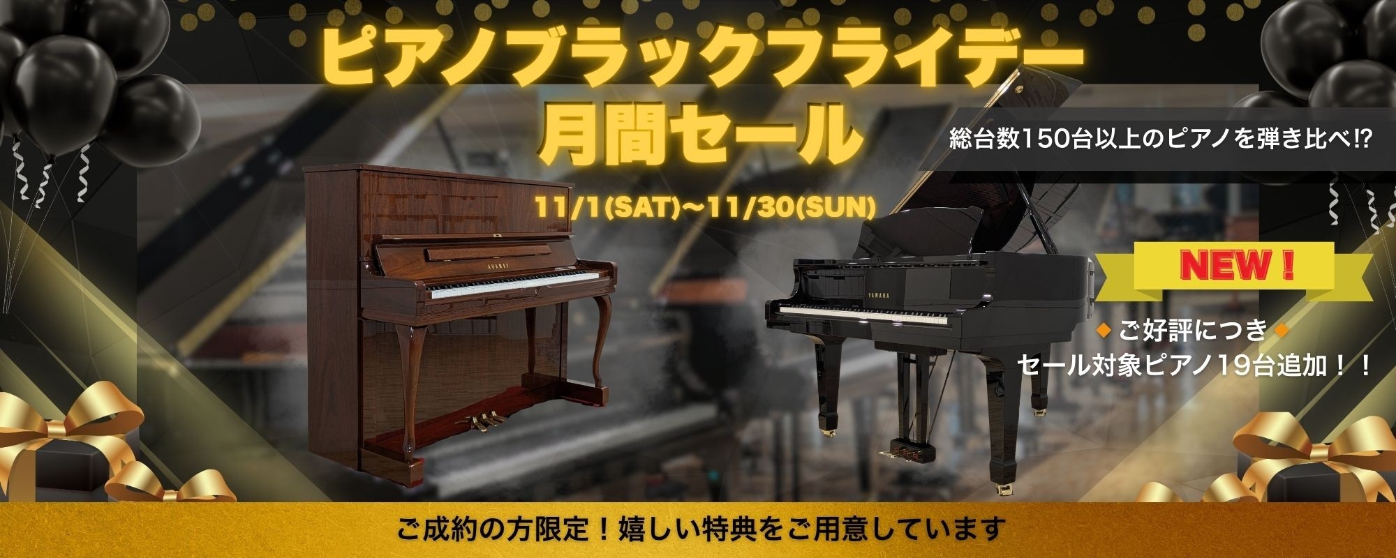 中古ピアノ販売のグランドギャラリー(所在地:愛知県岡崎市)は、2025年11月1日(土)〜11月30日(日)の期間限定で「ピアノ ブラックフライデー月間セール」を開催いたします。