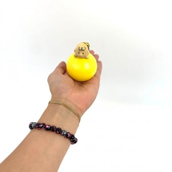 まんまるの球体に身体を預けたチャーリーブラウンです。この球体は風船?ガムボール?ふわふわボール?いろんな妄想が広がる起き上がりこぼし♪ちょこんと乗ったチャーリーブラウンが可愛いですよね。