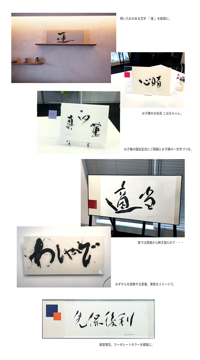 ご希望の文字・サイズ・額装デザインで、 すべてオーダーメイドのインテリア書を制作いたします。