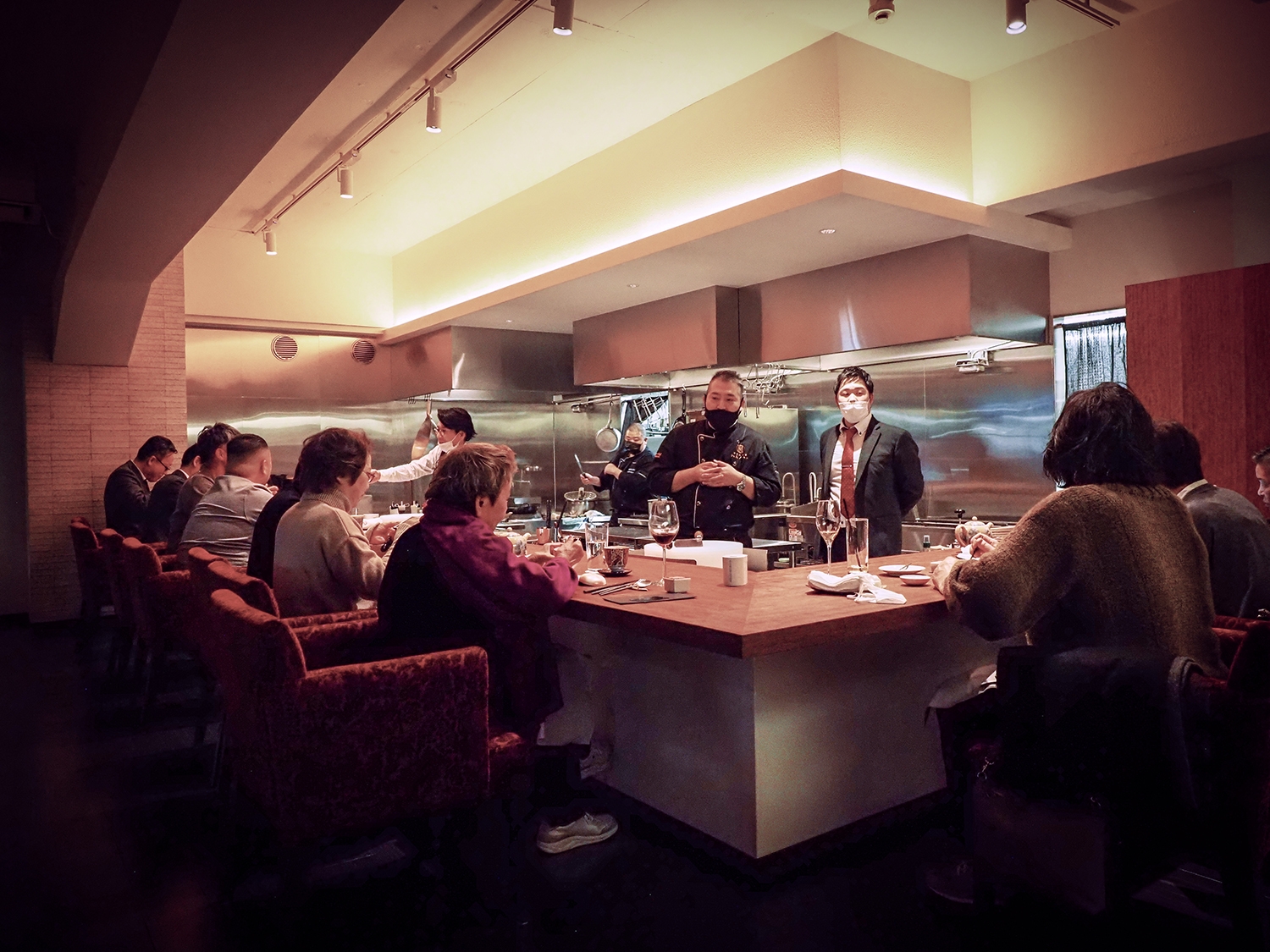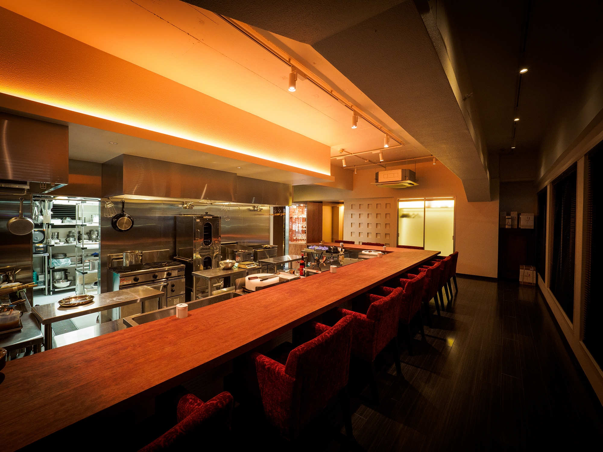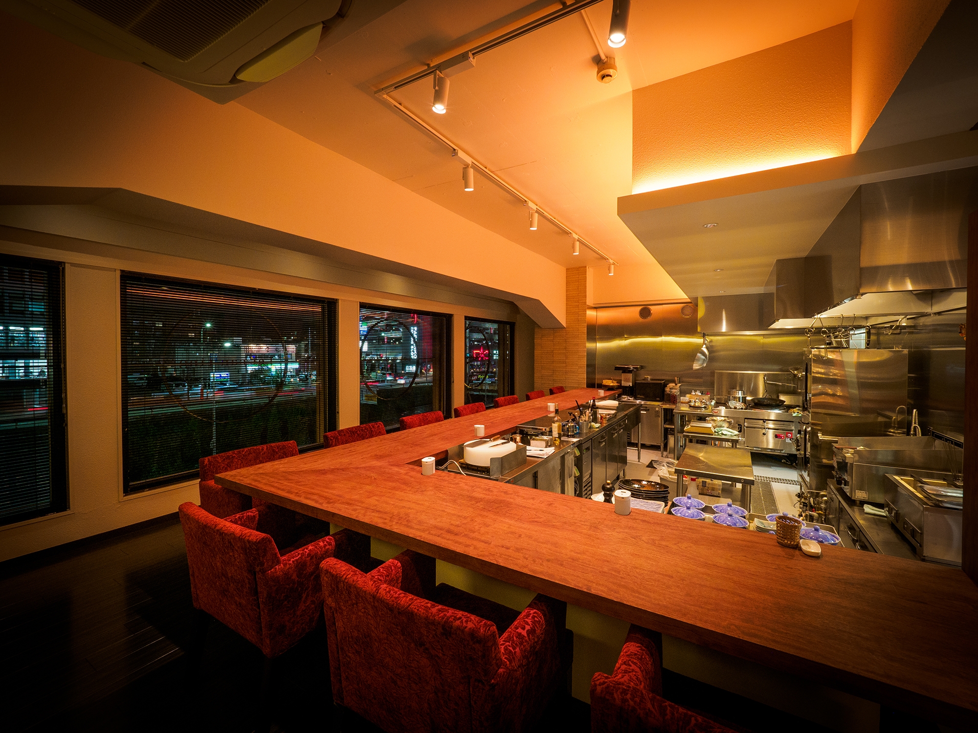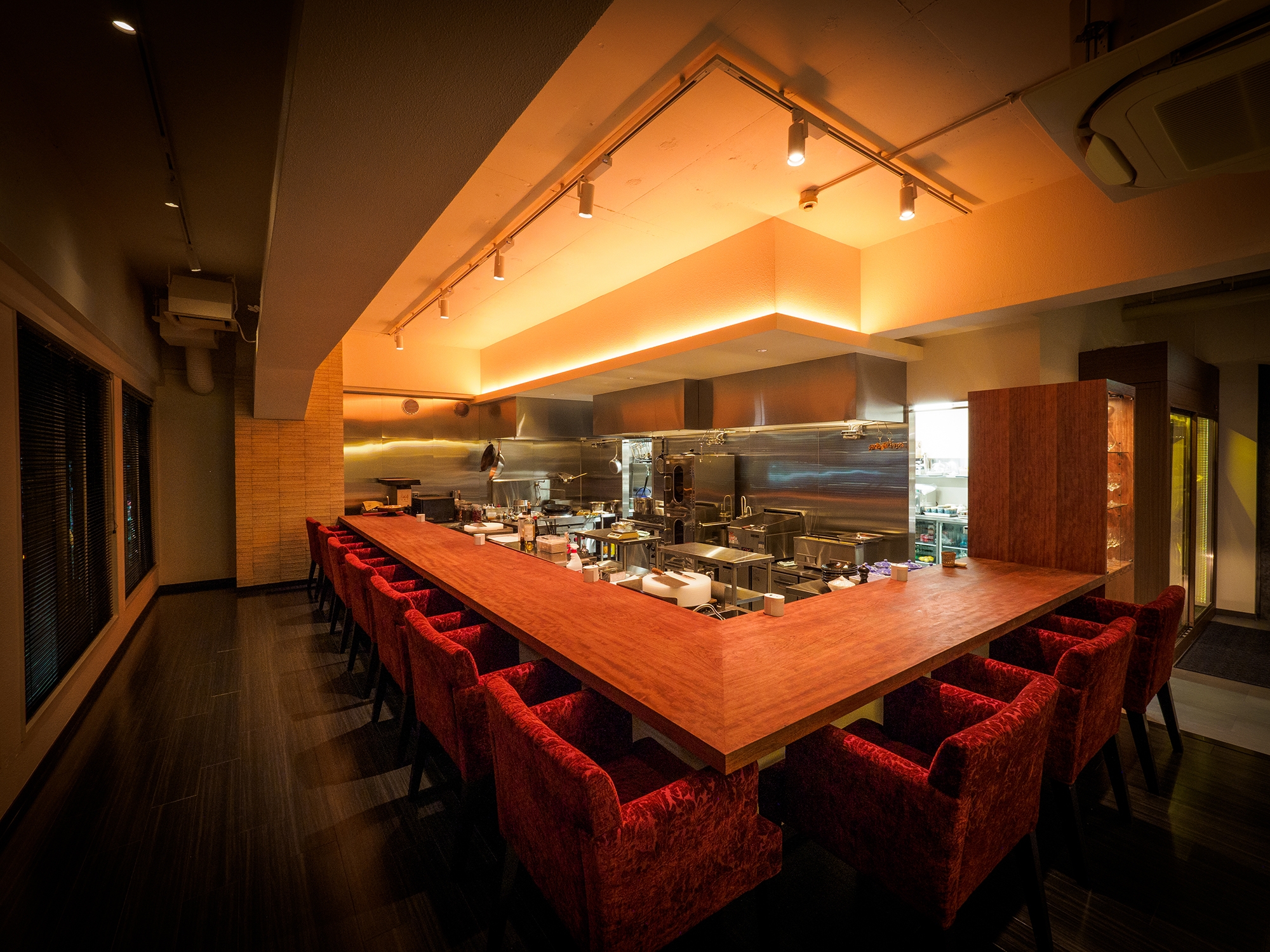 店内は、カウンター席のみで、シェフが目の前で料理を仕上げます。