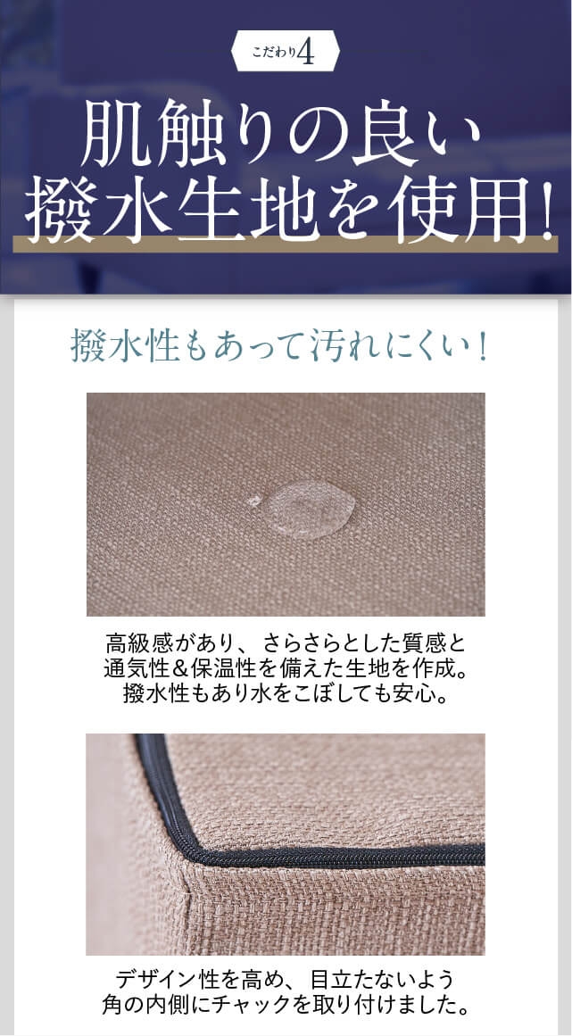 肌触りもよく、防水性のある撥水生地を使用しています。