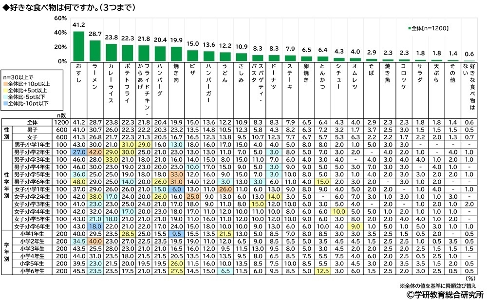 ★小学生の好きな食べ物 「おすし」は2000年調査以降不動の1位、2位「ラーメン」3位「カレーライス」