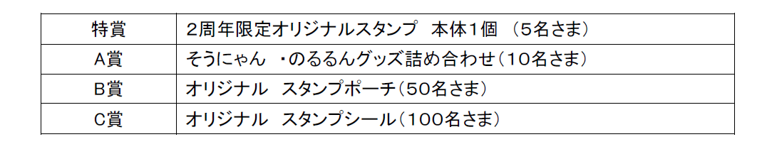 新横浜駅を含む相鉄線・東急線の7駅8カ所と両社の沿線にある施設の6カ所の計14か所にあるスタンプを集めるラリーで、全てのスタンプを集めた方にはコンプリート賞として「オリジナルメダル」 を、さらにオリジナルメダルに同封されている専用応募URLからWEBアンケートに答えると、抽選で165名さまに「そうにゃん・のるるんグッズ詰め合わせセット」などをプレセントします。