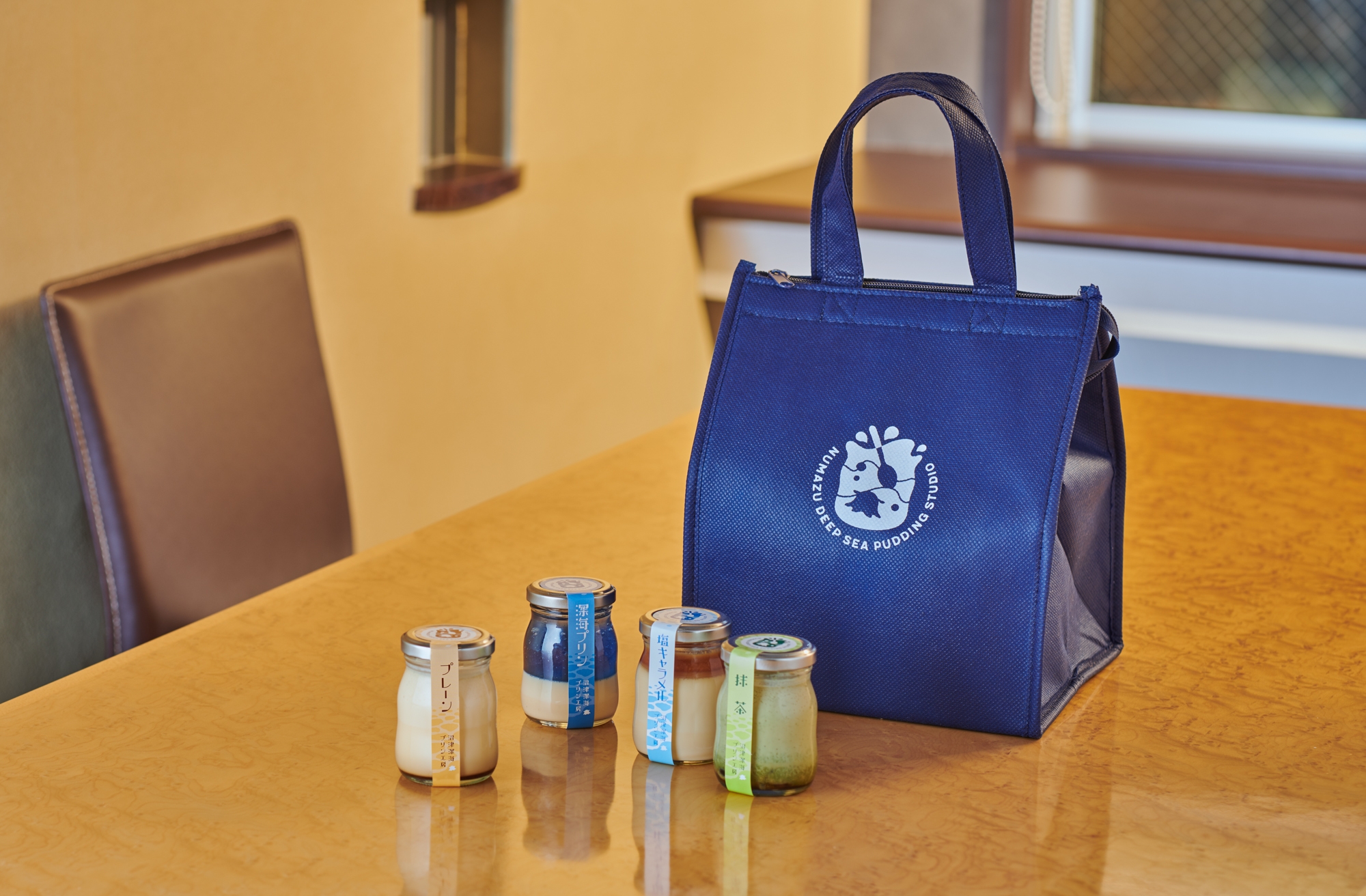 沼津初のプリン専門店「沼津深海プリン工房」は、沼津の海をテーマに、地元沼津を発信するプリン専門店として2018年7月13日にオープンいたしました。「沼津だけでしか提供できないプリンをつくりたい」ということで何度も試行錯誤をした末に完成した沼津の海(=駿河湾の深海)をイメージした日本初の青いプリン「深海プリン」が誕生しました。おかげさまで全国メディアにも多数取り上げていただき、全国各地から多数お取り寄せのお問い合わせが殺到いたしました。ただ、当社としては少しでも多くの方に沼津の方へ来ていただきたいという想いと、少しでも多くの方に自慢の商品を召し上がっていただきたいという想いの末、2019年4月5日(金)から数量限定で通販を開始することといたしました。また、今回は通販開始を記念して先着300名様には当店オリジナルの保冷バックをプレゼントいたします。ぜひ、沼津に中々お越しいただけない方にも沼津深海プリン工房の愛情こもった手作りプリンをご賞味いただければと思います。