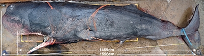 2023年1月、大阪湾の淀川河口付近にマッコウクジラ(オス、体長1,469cm)が迷い込み、死亡後、海に沈められた一連の出来事は世間の大きな関心を集めました。国立科学博物館を含む調査チームは学術調査を実施し、このマッコウクジラから歯や胃内容物、寄生虫などの標本や研究資料を採取しました。本展では、この個体の歯と胃内容物を展示します。歯を含む標本や研究資料から得られた研究成果により彼らの「今」を紹介します。