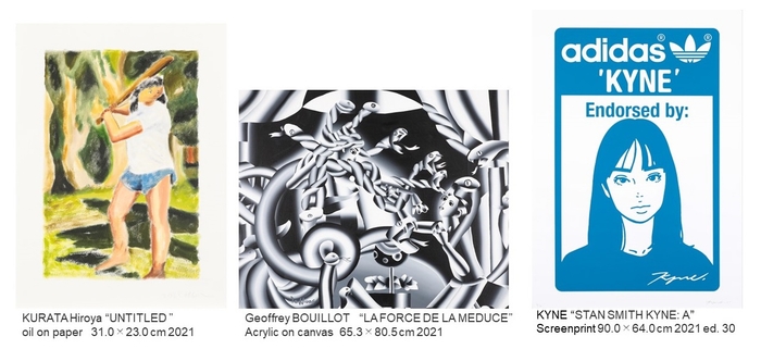 荻須高徳、絹谷幸二、柳原義達、ピカソ、ミロ、山口長男、草間彌生、元永定正、猪熊弦一郎をはじめKYNEがアディダスとコラボレーションをした限定作品、倉田裕也、フランス人アーティストのジョブレ・ブヨなど今注目のアーティスト作品が出品されます。