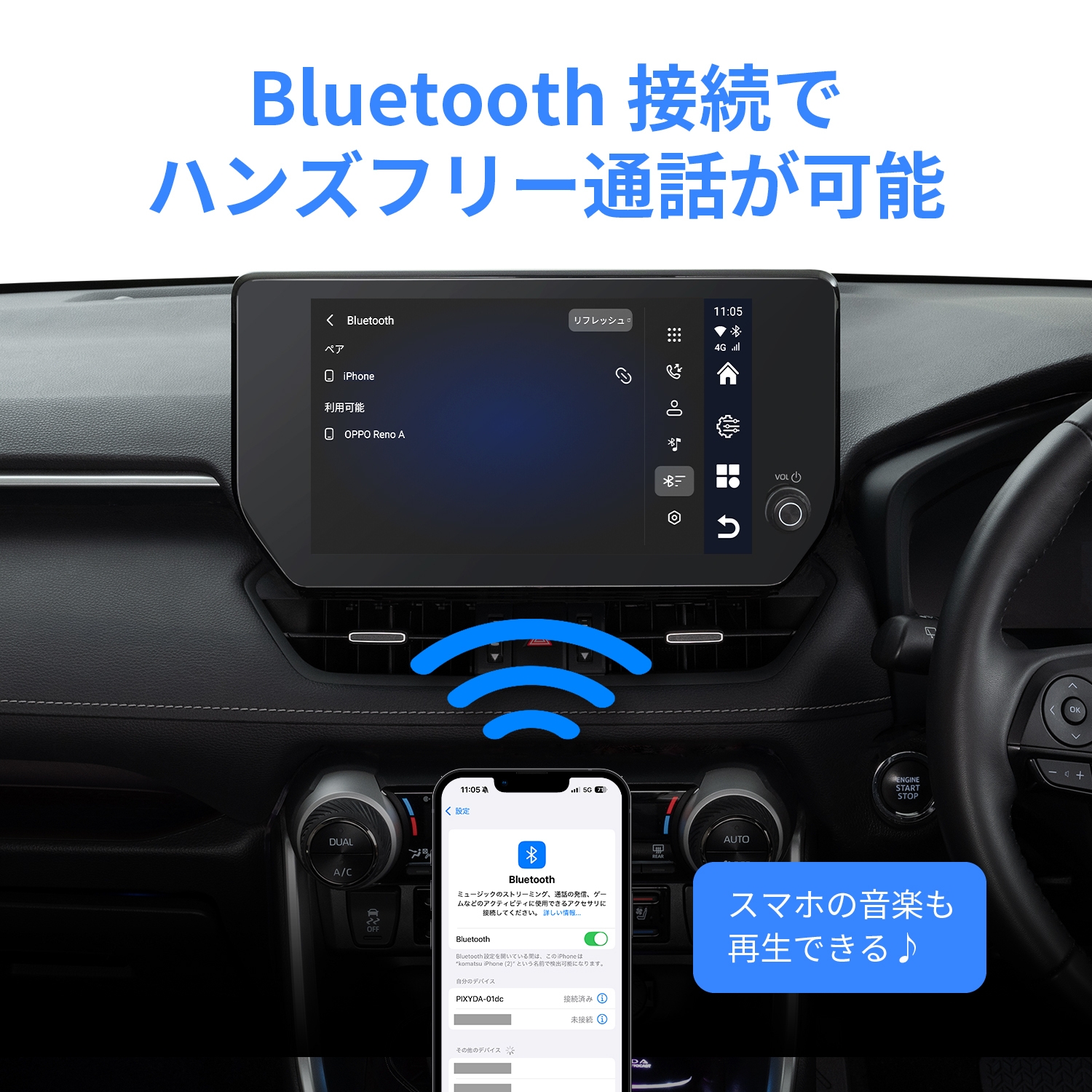 スマートフォンとBluetooth接続することで連絡先を同期し、車内モニターからハンズフリーで通話が可能。運転中の安全性が向上します。