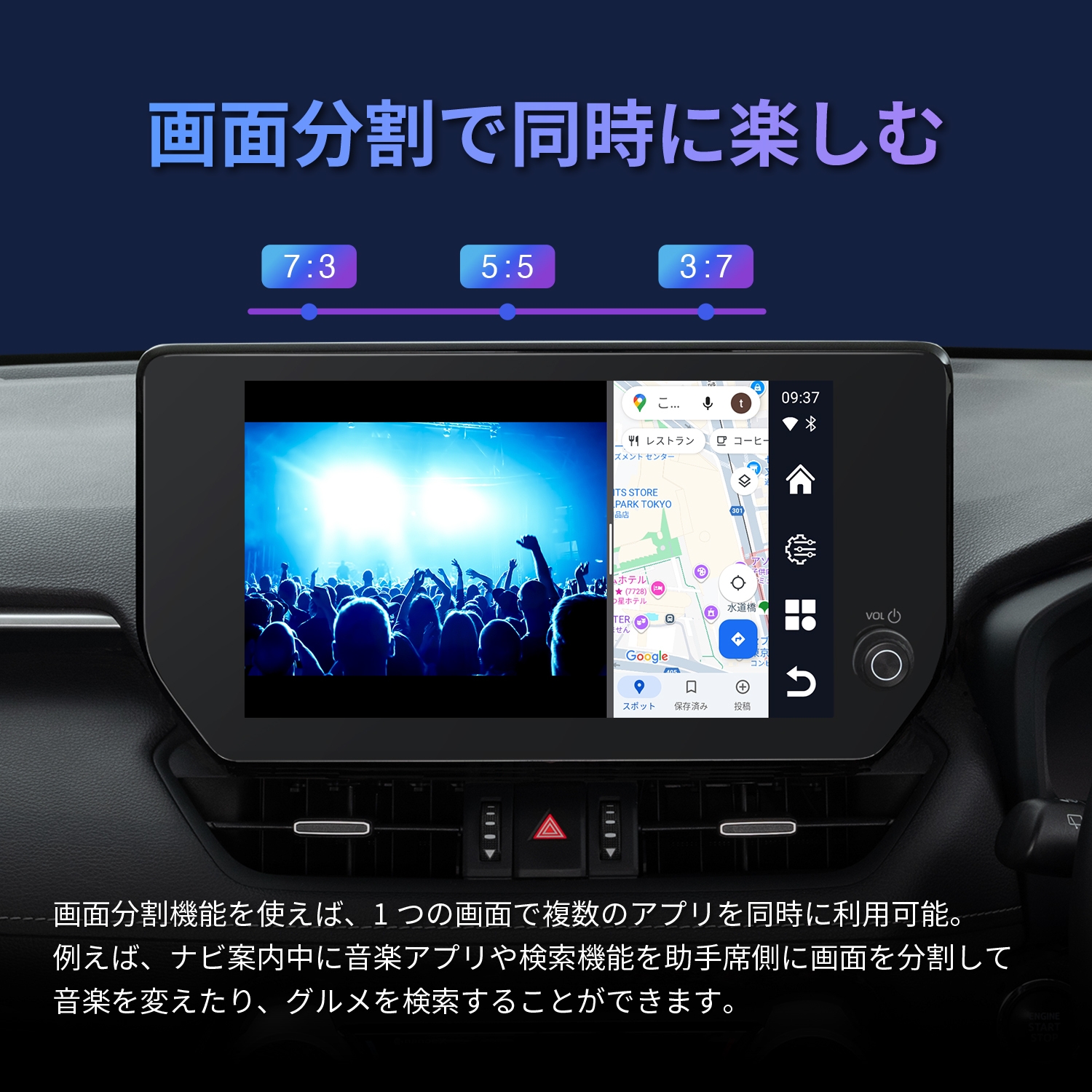 1つの画面で2つのアプリを同時に表示可能。ナビと音楽アプリ、または検索アプリを同時に利用するなど、便利で効率的な使い方が可能です。