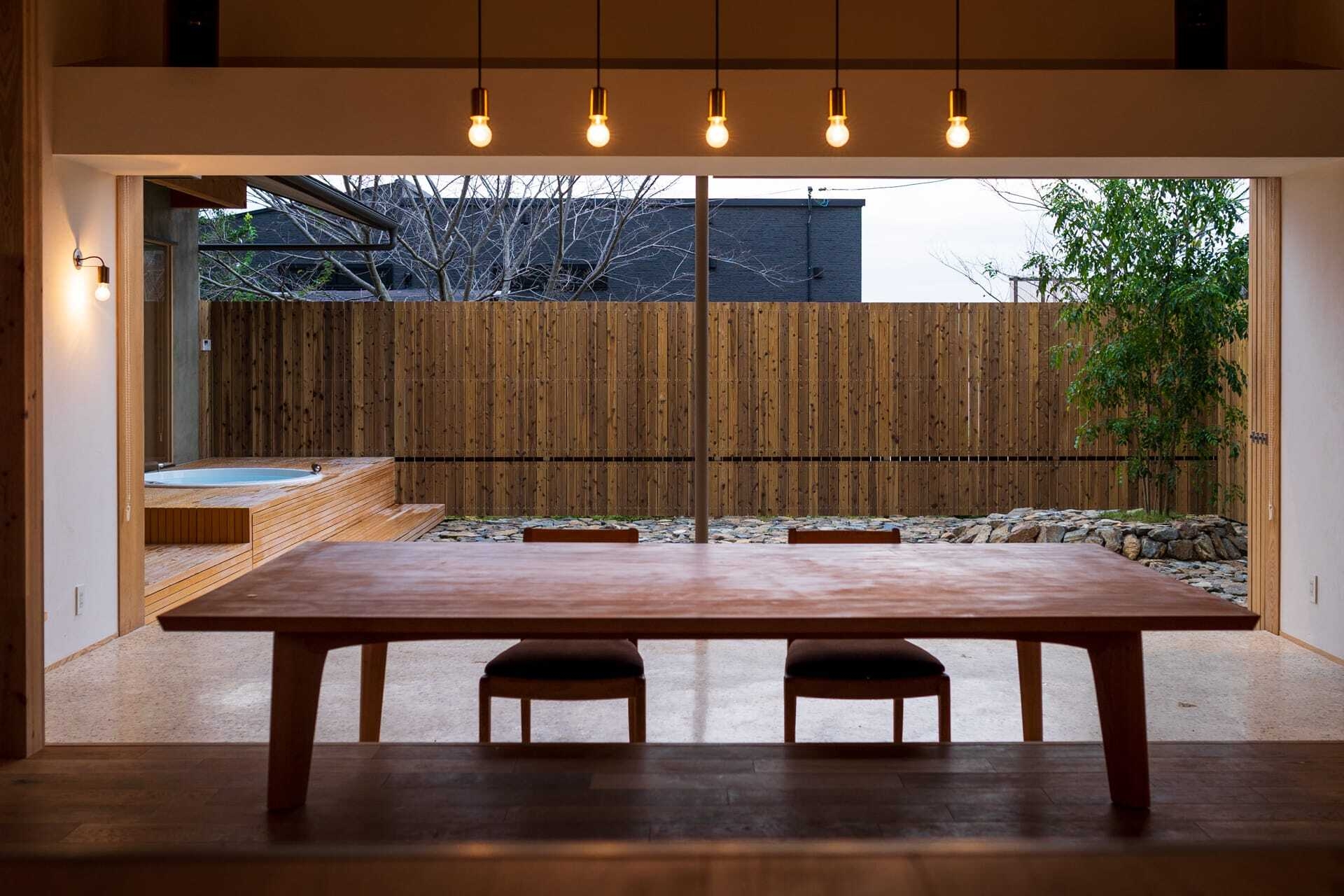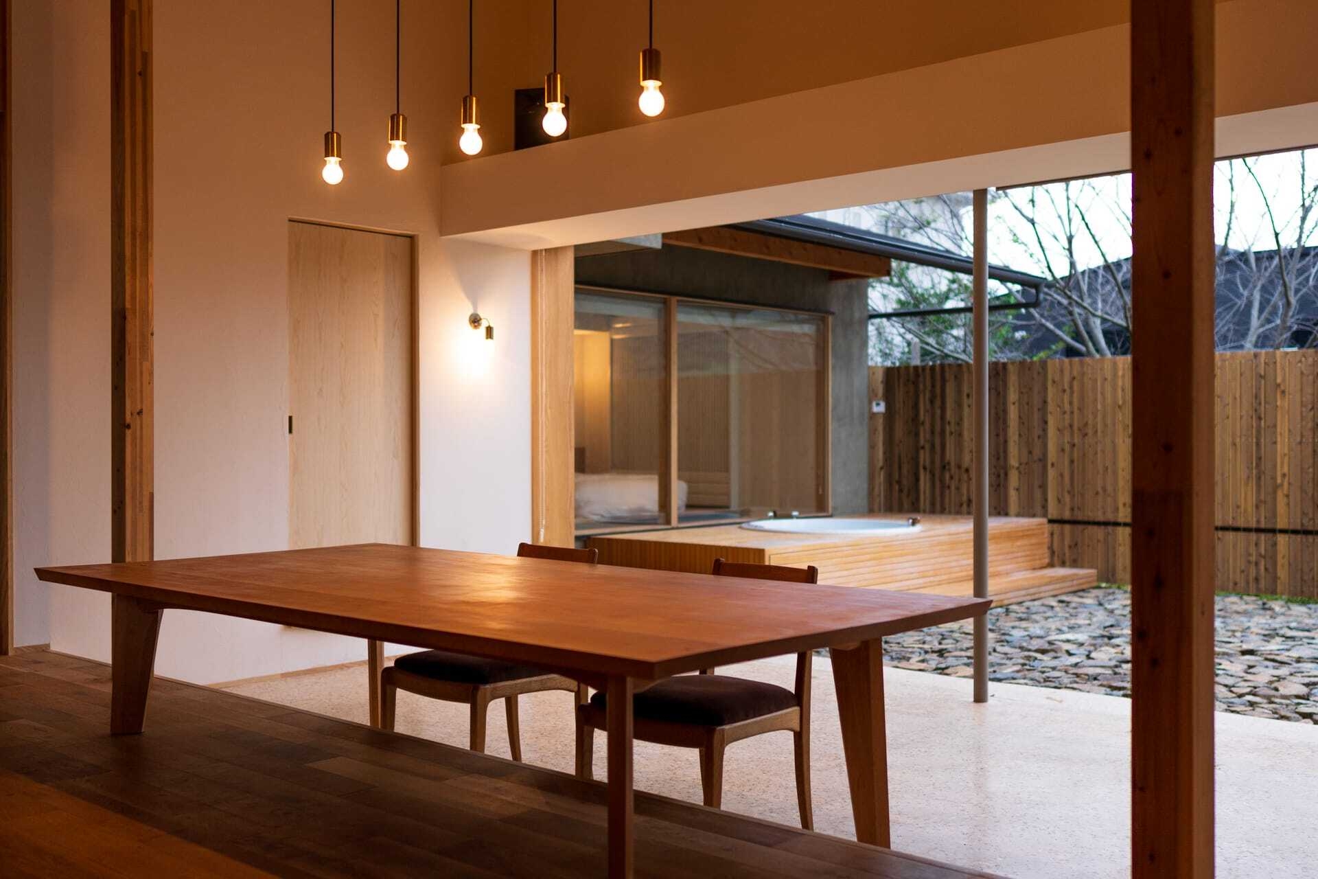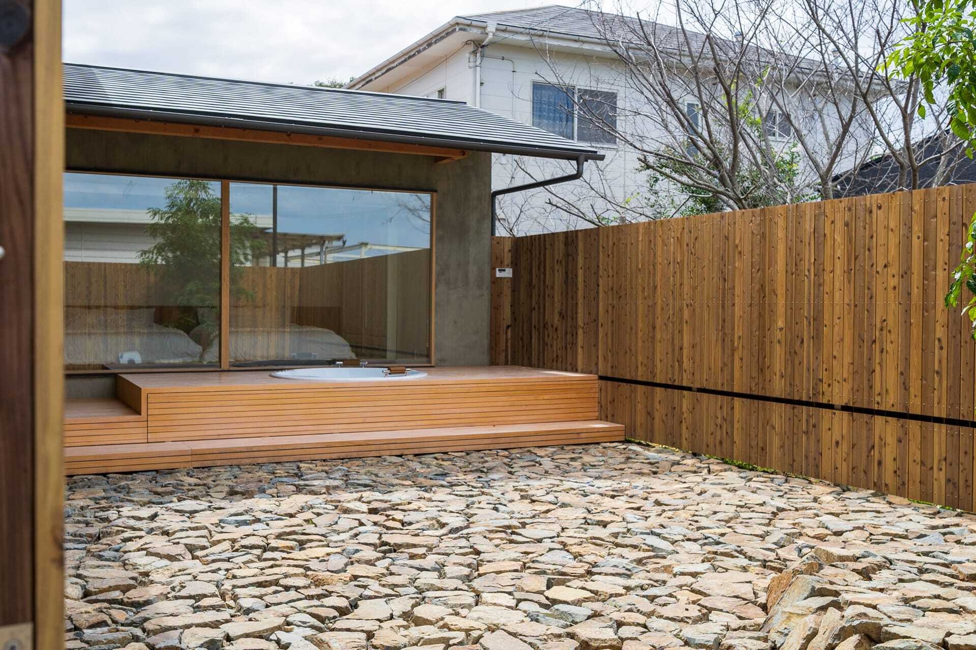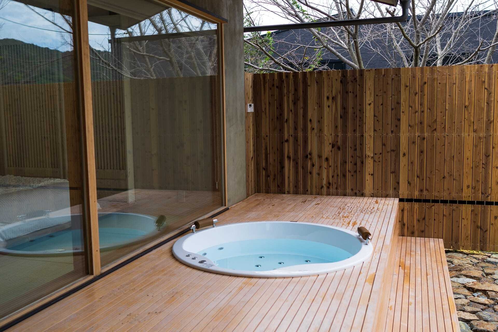 プライベート感のある専用の中庭、檜木で作られたジャグジーエリアを屋外に備えています。
