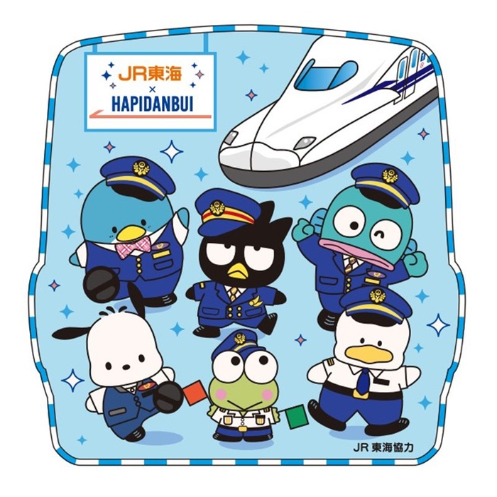 コロナ禍を乗り越え、さらなる飛躍を目指す「JR東海グループ」、そして2023年10月1日に発足し新たなチャレンジの歩みを始めた「JR東海リテイリング・プラス」との想いが重なり、今回のコラボレーションが実現いたしました。はぴだんぶいのキャラクターたちが、東海道新幹線の現場長・駅係員・パーサーの制服を着てお仕事をしたり、新しく生まれ変わった新旧パーサー制服を着ていたり、はぴだんぶいのお友達も登場するデザインが、本コラボレーションならではの描きおろしデザインのポイントです。