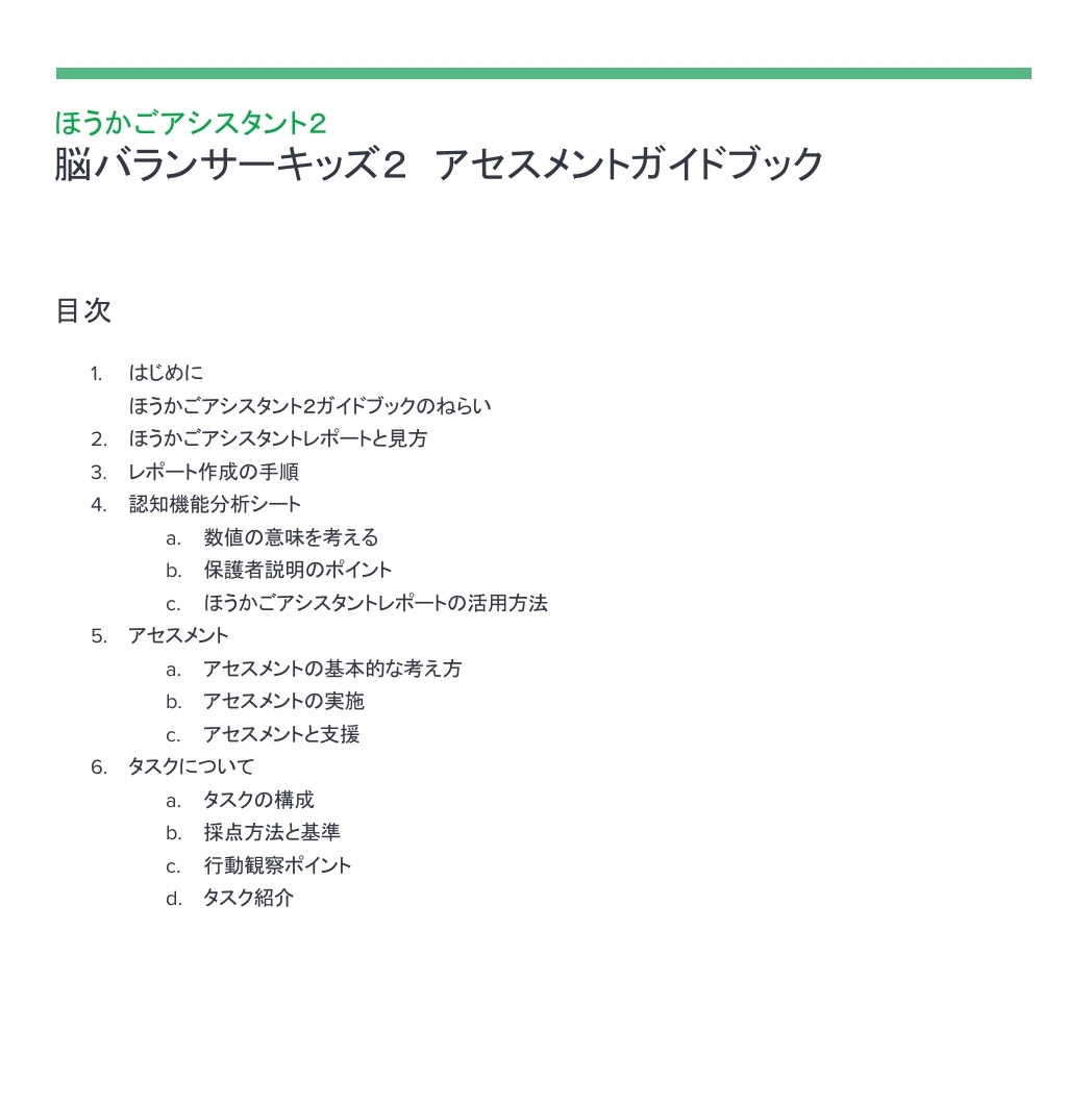 本サービスの結果を活用して、個別支援計画の作成や一人ひとりに合わせた支援方法の考案、子どもたちを伸ばしていく様々な活動アイデアをガイドブックで紹介します。
